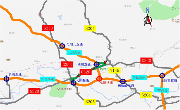 路線一:由S33上萬高速弋陽北收費(fèi)站下高速,沿G353行駛在G60滬昆高速弋陽收費(fèi)站上高速前往南昌方向。