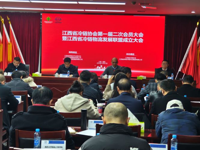 根據《江西省冷鏈協會章程》規定,并為切實推進省政府辦公廳關于推進冷鏈物流體系建設若干措施落地見效,經省供銷合作社聯合社同意,2024年12月26日一27日在南昌市召開協會一屆二次會員大會暨江西省冷鏈物流發展聯盟成立大會。會議審議了江西省冷鏈協會第一屆二次會員大會議程、年度工作報告和年度財務報告、增選理事、副會長建議人選名單、2024年度評先表彰名單、江西省冷鏈物流發展聯盟成立大會相關事宜,審議表決通過了江西省冷鏈物流發展聯盟議事規則、江西省冷鏈物流發展聯盟選舉辦法、江西省冷鏈物流發展聯盟捐贈及資金管理辦法、江西省冷鏈物流發展聯盟第一屆理事會理事、監事,審議表決江西省冷鏈物流發展聯盟第一屆理事會理事長、副理事長、秘書長名單。會議由省供銷合作聯社習楊軍處長主持,省供銷合作聯社副主任李家祥作重要講話。會議還舉行了江西省冷鏈物流發展聯盟成立揭牌儀式。