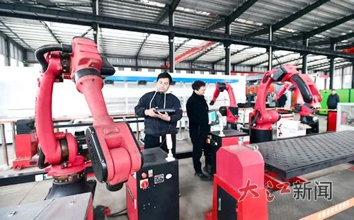 萬載縣工業園區龍恩智能裝備有限公司生產車間里,工人在對機器臂訂單進行系統編程。大江網視覺江西 鄧龍華 攝