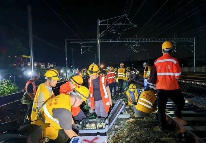 瑞梅項目部聯合瑞梅鐵路建設指揮部、南昌電務段編制施工方案,提前組織專業技術人員,對芯線逐根進行色彩標識,對轉轍機拆卸進行了預演。施工中,各小組密切配合,有序完成了道岔拆除作業。
